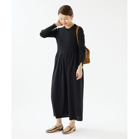 上部分は3×2のリブ、下スカート部分は天竺ギャザーの切り替えになっており、歩くとふんわり広がる女性らしいシルエットです。