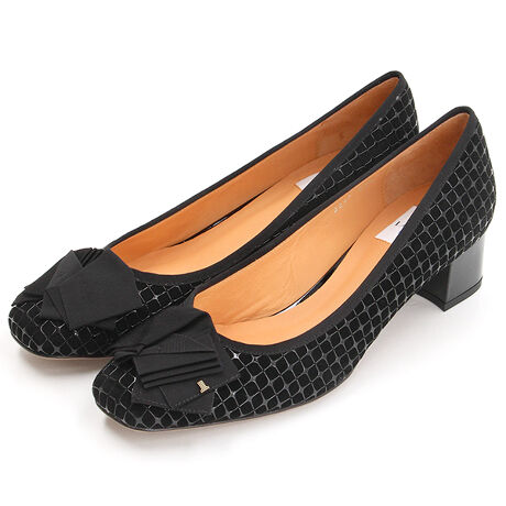 スクエアトゥたたみリボンパンプス