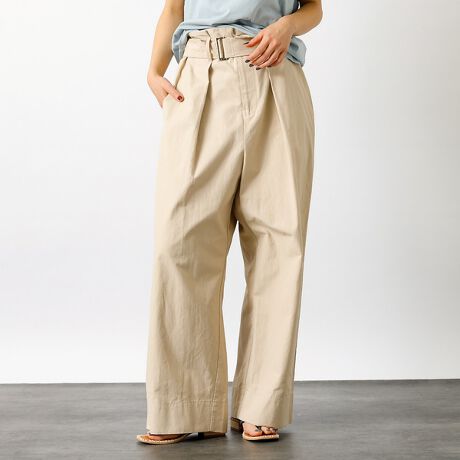 【Le Melange/ル・メランジュ】ツイルハイウエストパンツ / ベルト付き
