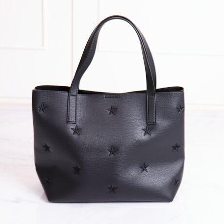 ・シボ感のある合成皮革の前面に星柄の刺しゅうをちりばめたトートバッグ。