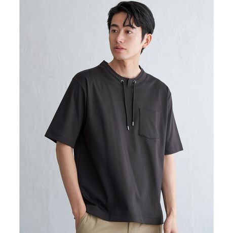 暑い季節に心地よい清涼感をもたらす、接触冷感のポンチ素材を採用した5分袖のポケットTシャツ。