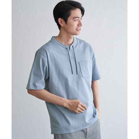 暑い季節に心地よい清涼感をもたらす、接触冷感のポンチ素材を採用した5分袖のポケットTシャツ。