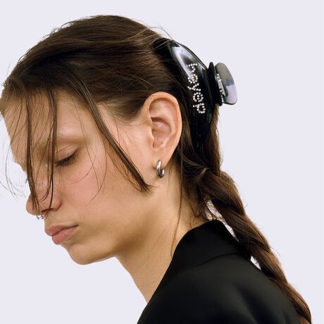 ラインストーンとロゴデザインが特徴的な大きめサイズのヘアクリップ。