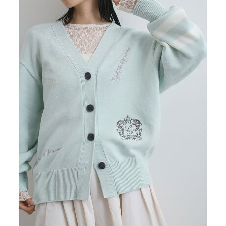 袖のラインと紋章の刺繍がプレッピーらしいカーディガン。