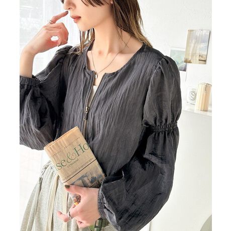 袖のシャーリングが細見え+少しガーリーらしさをプラス。