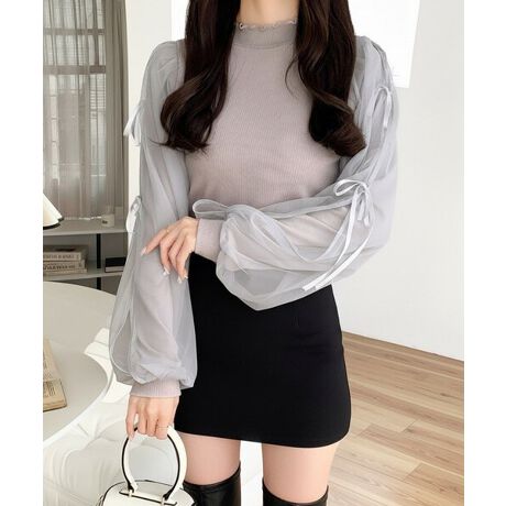 エレガントなチュールスリーブが魅力のこのニットソーは、