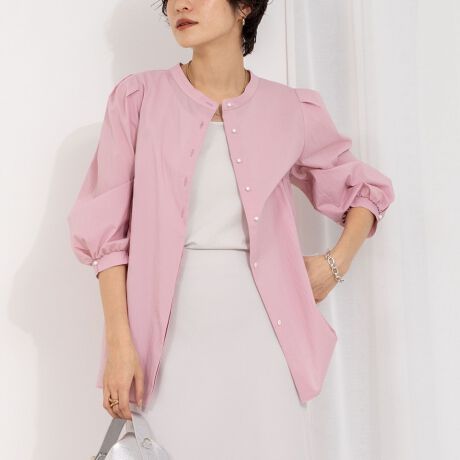 ・釦を前にしても後ろにしてもパールがポイントになり一枚で華やかなスタイリングに