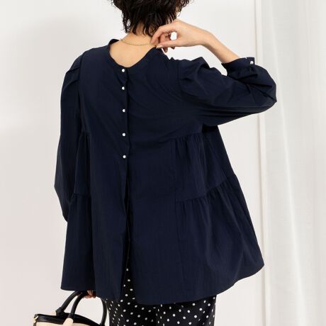 ・前後着用可能なティアード切替のブラウス