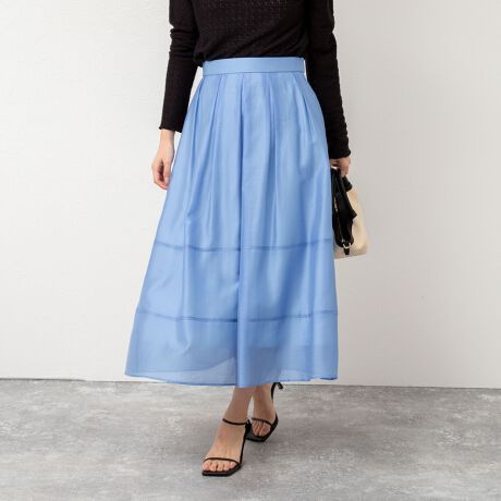 《セットアップ対応》ウォッシャブルタックフレアシアースカート