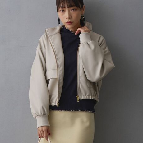 トレンドのショート丈にすることで全体のバランスをシャープにしてくれスタイルアップが叶うブルゾンに。