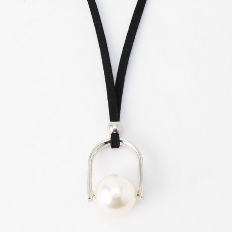 大き目のパールがアクセントになったネックレス。シルバーとゴールド2色展開。きれい目からカジュアルまで幅ひろいコーディネートが楽しめます。