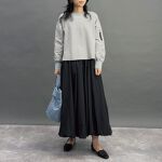 色合いもシンプルなのでカラーや柄物との合わせも◎デニム等のカジュアル素材と合わせるときは足元をパンプスにしたり、アクセサリーを足して女性らしさをプラスするのがオススメです。