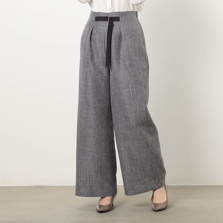 【WALDO】麻調のポリエステル素材を使ったワイドパンツ。ウエストにグログランテープを施しワイドなシルエットが大人らしさをかもしだしてくれます。ポリエステル素材のためシワになりにくく清涼感もあり幅広く活躍してくれるパンツです。ダブルジャケット(メーカー品番:5168-3400)とセットアップが可能になります。