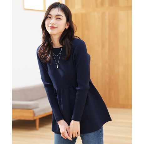 ・見頃上部分は細いリブ・見頃下は天竺編地切り替えでペプラムシルエットに