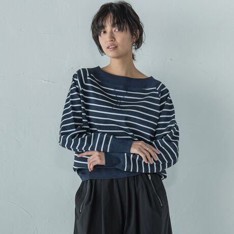 パンツ、スカート、どんなボトムにもマッチし、一枚でサマになります。