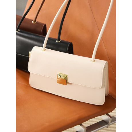 カッチリとしたスクエアフォルムに、ゴールドのメタルプレートが上品な印象のバッグ。長めのワンハンドルデザインで、肩掛けがしやすいのも嬉しいポイントです。スタイリングを選ばず、デイリーからフォーマルなシーンまで幅広く活躍するアイテムです。