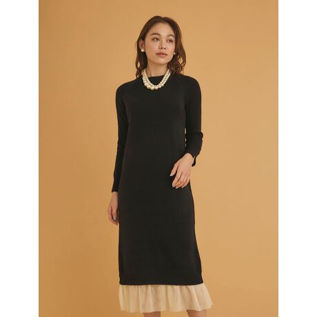 裾シフォンニットワンピース