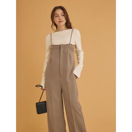 大胆なバックオープンデザインが印象的なベアトップサロペット。背中の開きと、華奢なストラップが女性らしさを引き立ててくれます。インナーを合わせたり、シャツやジャケットを羽織ったり、さまざまなスタイリングが楽しめるアイテムです。