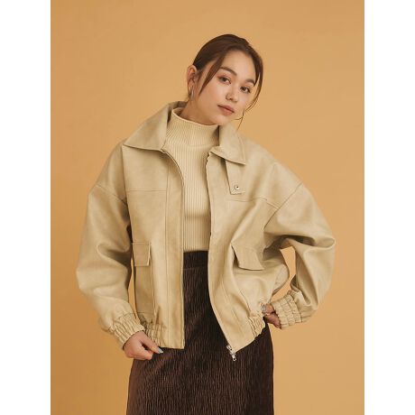 フェイクレザーを使用した、ジップアップのミドル丈ジャケット。ゆったりとしたシルエットが、こなれ感のある着こなしを演出します。カジュアルなパンツにもフェミニンなスカートにも合わせやすく、幅広いスタイリングに活躍するアイテムです。