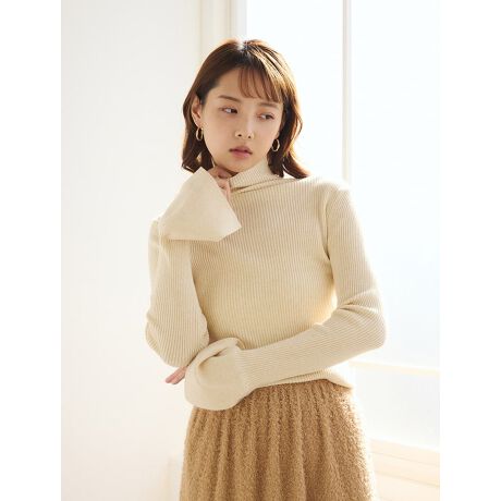フレア袖が女性らしい印象のハイネックリブプルオーバー