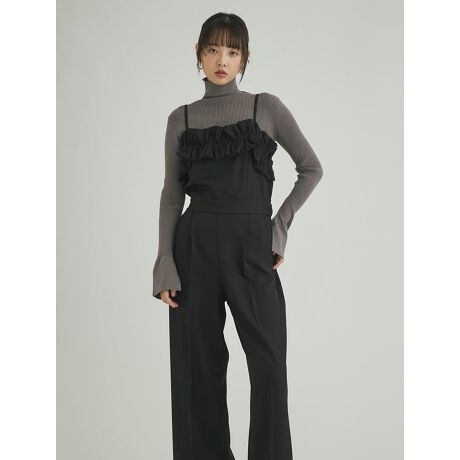 フェミニンなフリルデザインが目を惹くキャミオールインワン