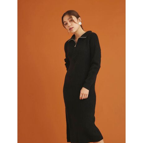 ハーフジップデザインがポイントのニットワンピース