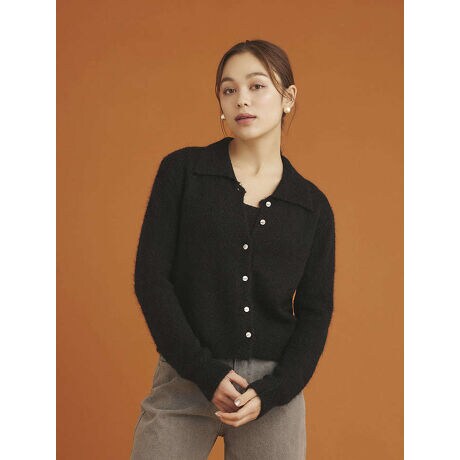 襟付きの長袖ニットカーディガントップスと、コンパクトなビスチェのセットアイテム。セットで着用するのはもちろん、それぞれ単品でも使えるのも嬉しいポイントです。シンプルなデザインで合わせるボトムスを選ばず、さまざまな着こなしが楽しめるアイテムです。