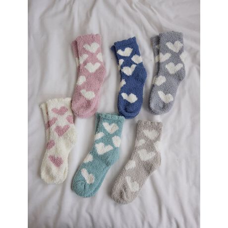 大きめのハート柄が可愛い、クルー丈のニットソックス。モコモコとした素材感であたたかく、柔らかな肌触りで履き心地の良さも魅力的なポイントです。おうちのリラックスタイムにぴったりで、寒い季節に活躍すること間違いなしのアイテムです。
