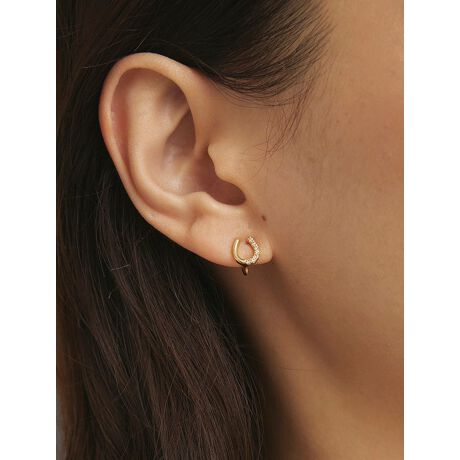 ストーンをあしらったホースシューモチーフが印象的なイヤリング。キラキラとした輝きが美しく、耳元に華やかさをプラスしてくれます。デイリーのカジュアルなスタイリングにはもちろん、ドレスアップしたパーティーシーンにも活躍するアイテムです。