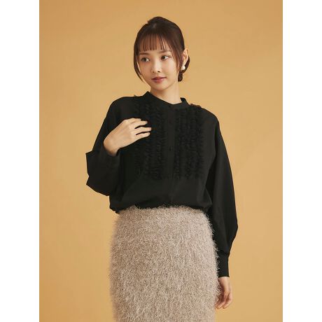 フロントのフリルデザインが目を惹くシャツブラウス