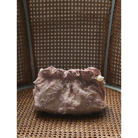 立体的なフラワーデザインが目を惹くチュールポーチ