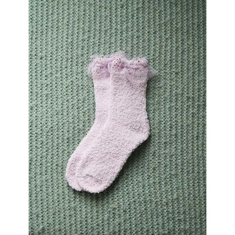もこもことした柔らかな肌触りが魅力のニットソックス。履き口にあしらわれたキラキラと輝くスター柄のチュールフリルが、華やかさをプラスしてくれます。足元を優しくあたためてくれて、おうちでのリラックスタイムにもぴったりなアイテムです。
