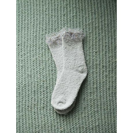もこもことした柔らかな肌触りが魅力のニットソックス。履き口にあしらわれたキラキラと輝くスター柄のチュールフリルが、華やかさをプラスしてくれます。足元を優しくあたためてくれて、おうちでのリラックスタイムにもぴったりなアイテムです。