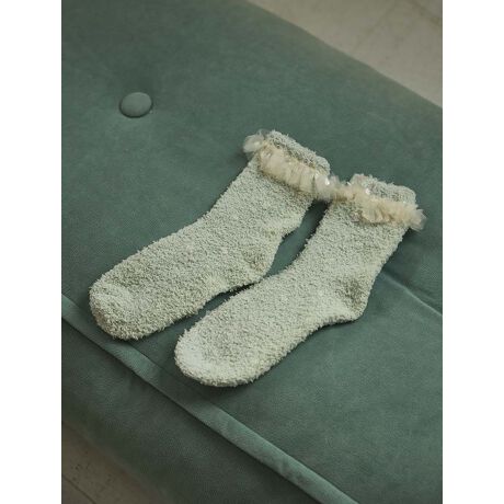 ふんわりとしたチュールのフリルがフェミニンな雰囲気を演出するドット柄ニットソックス。もこもことした柔らかな素材感で、肌触りの良さも魅力的なポイントです。足元を包み込むあたたかな履き心地で、これからの季節にぴったりなアイテムです。