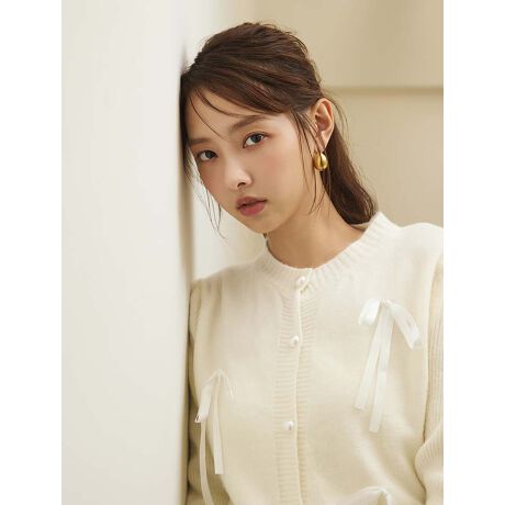 リボンがフェミニンさをプラスするショートカーディガン