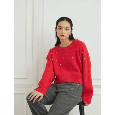 キラキラと輝くビジューを散りばめた、華やかな印象のドルマンニット。ゆったりとしたシルエットに、サイドのスリットが抜け感のある着こなしを演出します。短めの丈感なので、ハイウエストのボトムスともバランス良く合わせられるアイテムです。
