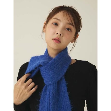 ふわふわとしたシャギー素材がシーズンムードを演出するニットマフラー。凹凸のあるリブ編みと、細幅のデザインがすっきりとした印象を与えてくれます。シンプルなのでどんなスタイルにも合わせやすく、幅広いシーンで活躍するアイテムです。