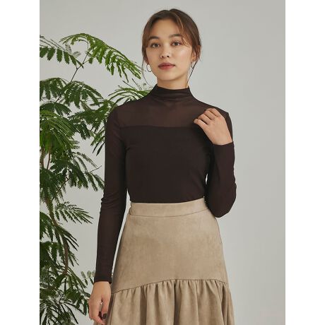 シアーな透け感が女性らしいハイネックトップス