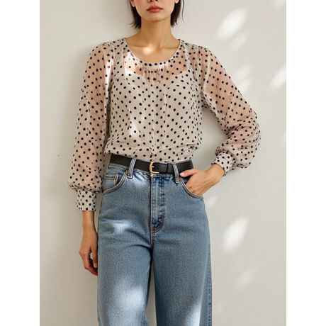 女性らしい透け感が魅力のキャミ付きドットシアートップス