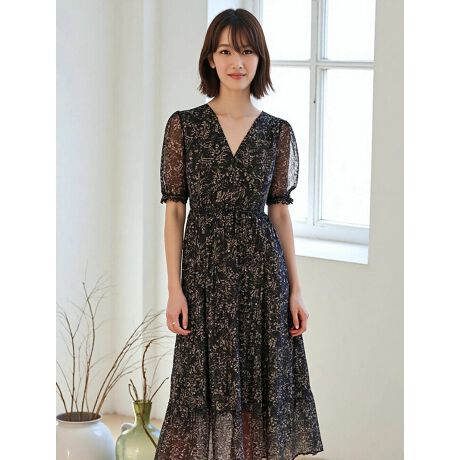 程よい透け感が軽やかな印象のフラワープリントワンピース。ふんわり広がるティアードデザインと、丸みのあるパフスリーブがフェミニンな雰囲気を演出します。一枚でスタイリングが決まり、デイリーからお出かけまで幅広いシーンで活躍するアイテムです。