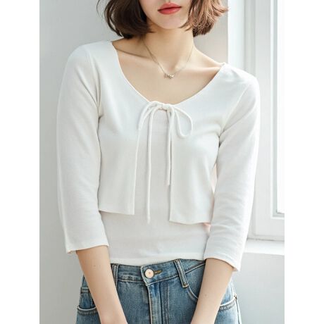 カップ付きのキャミソールと、ショート丈のVネックカーディガンのセットアイテム。セットで着用するのはもちろん、それぞれ単品でも使えるのも嬉しいポイントです。シンプルなデザインで合わせるボトムスを選ばず、幅広いスタイリングに活躍するアイテムです。