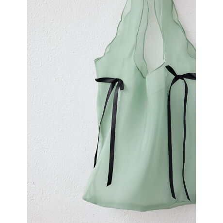 シンプルなデザインに、サイドのリボンがアクセントになったバッグ。ほどよい透け感のあるシアー素材が、軽やかな印象を与えてくれます。どんなスタイリングにも合わせやすく、デイリーからレジャーまで幅広いシーンで活躍するアイテムです。