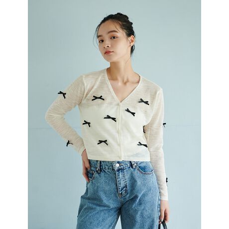 リボンデザインが目を惹くシアーカーディガン