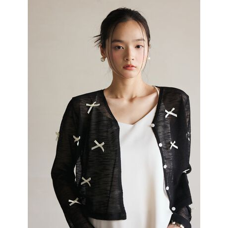 リボンデザインが目を惹くシアーカーディガン