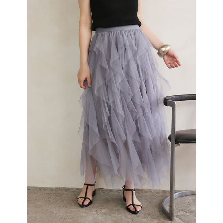 フェミニンな雰囲気が魅力のチュールフリルスカート