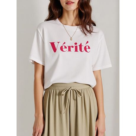 シンプルながら存在感があるカラーのロゴプリントがアクセントになったTシャツ。合わせるボトムスを選ばず、様々なスタイリングが楽しめます。一枚で着用するのはもちろん、ジャケットやカーディガンなどのインナーとしても活躍するアイテムです。