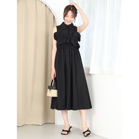 フェミニンなフリルデザインのビスチェが付いた、ノースリーブのシャツワンピース。それぞれ単品でも使えるので、様々な着こなしが楽しめます。合わせる小物やシューズ次第で、デイリーからお出かけまで幅広いシーンで活躍するアイテムです。