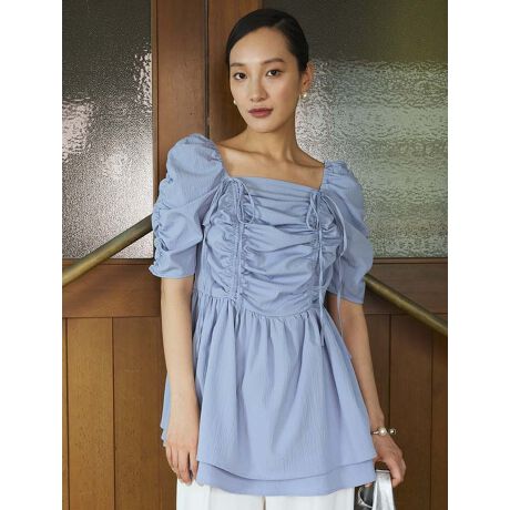 ギャザーを寄せたドロストデザインが目を惹くブラウス