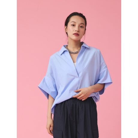 スキッパーデザインが首元をすっきりと見せてくれるシャツ。ゆったりとしたビッグシルエットが、抜け感のある着こなしを演出します。どんなボトムスとも合わせやすく、カジュアルからきれいめまで幅広いスタイリングに活躍するアイテムです。