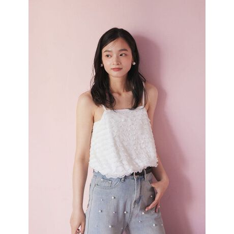 フェミニンなフリルデザインが目を惹くキャミソール